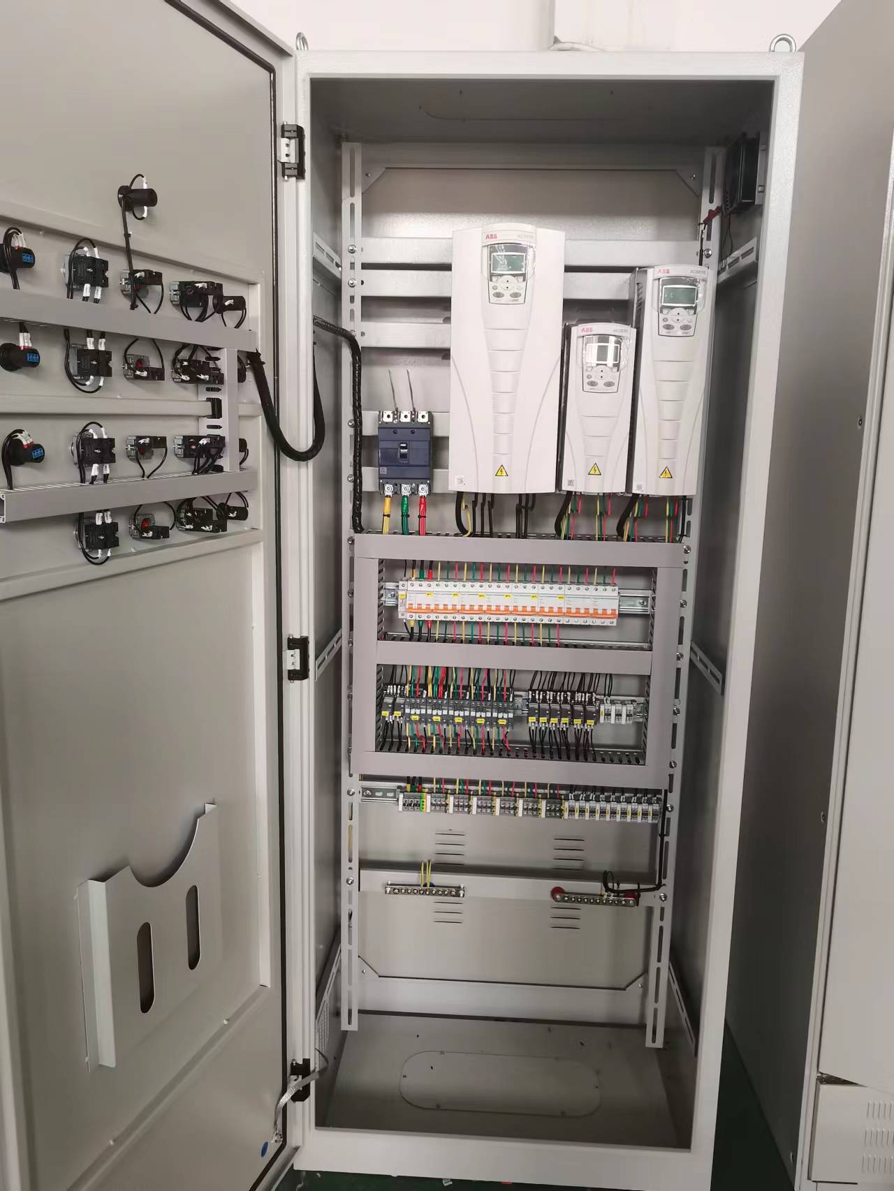 變頻控制柜通常設(shè)計有斷路器元件,它連接著進(jìn)線電源,可以幫助變頻控制柜完成電路的通斷操作,并能夠在電路和變頻器出現(xiàn)短路或過載時提供保護(hù)。此外變頻柜還可以在電機(jī)維護(hù)時切斷電源保證操作人員安全。