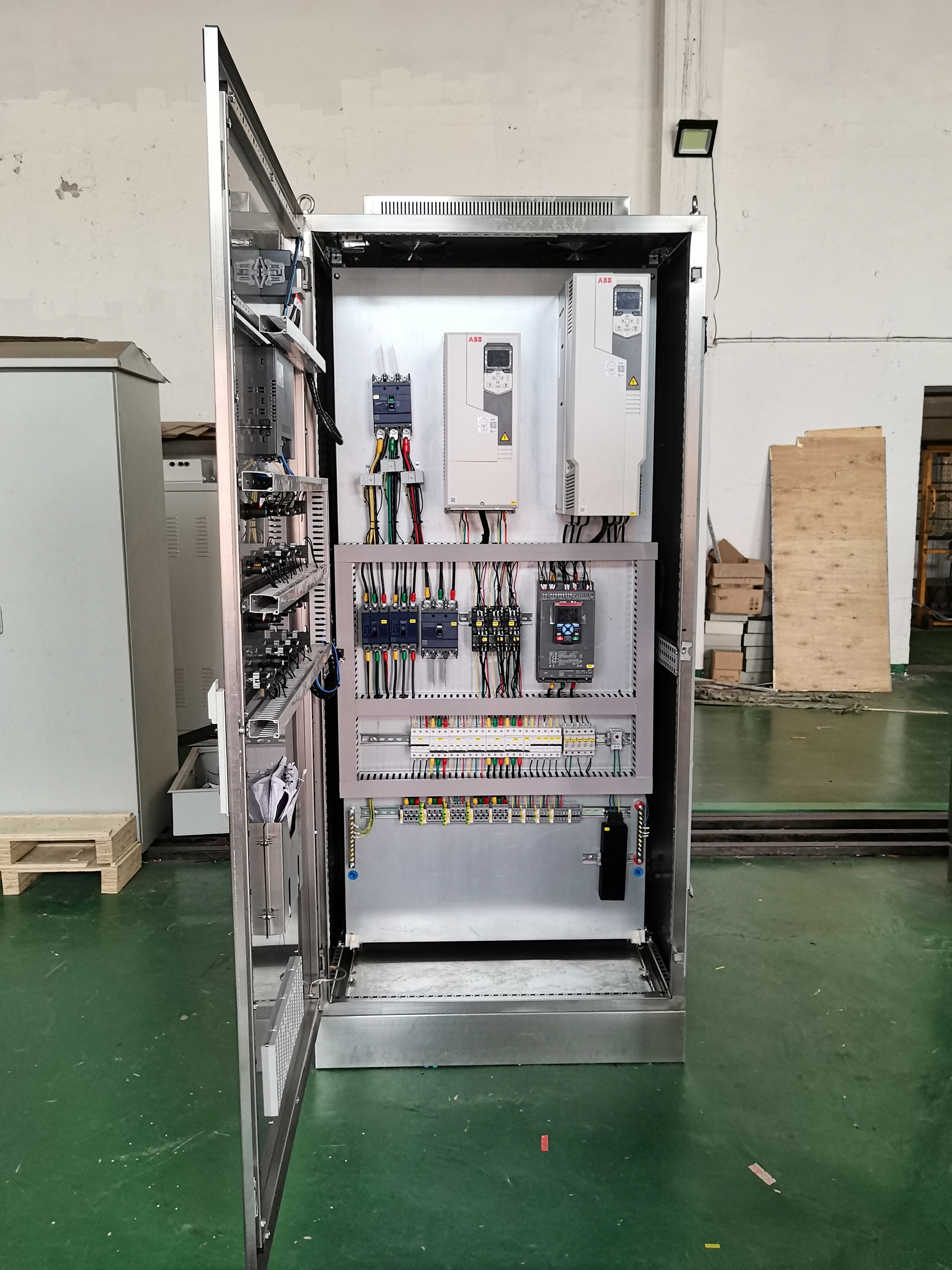 有變頻器的控制柜需不需要加通風(fēng)扇,需要看是多大功率的變頻器,發(fā)熱量有多大,發(fā)熱量大才要加風(fēng)扇散熱。日騰工控專業(yè)為用戶提供電氣控制系統(tǒng)的圖紙設(shè)計;電控柜成套制造;上位機系統(tǒng)、PLC控制系統(tǒng)的軟件程序和人機界面開發(fā);以及電控設(shè)備的現(xiàn)場安裝,調(diào)試維護等服務(wù)。要產(chǎn)品為:電控柜、電控箱、低壓開關(guān)柜、配電柜、自動化控制柜、自動化控制箱、中央控制系統(tǒng)、工業(yè)自動化系統(tǒng)集成等成套設(shè)備。